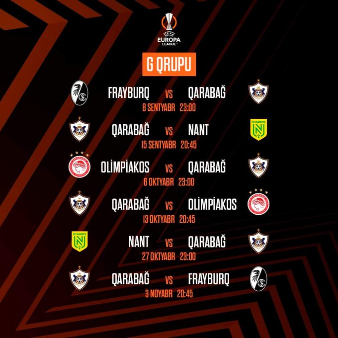 . 2000 United Kingdom time. Pour rappel cette rencontre sinscrit dans le cadre de la 5ème journée du Groupe G en Ligue Europa. The starting line-up for FK Qarabag was 1 Sahruddin Mahammadaliyev 29 Marko Vesovic.